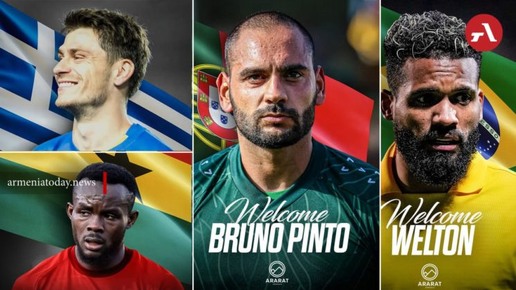 Футбольный клуб «Арарат-Армения» официально объявил о подписании контракта с 33-летним португальским вратарем Бруно Пинто. Для вратаря армянская команда станет первым зарубежным клубом в его карьере. В прошлом Пинто играл исключительно на родине, а его последним клубом был «Фелгейраш», выступающий во втором дивизионе Португалии. По данным портала Transfermarkt, рыночная стоимость футболиста оценивается в €125 тысяч. ФК сегодня также сообщила о переходе в «Арарат-Армения» 26-летнего бразильского атакующего полузащитника Велтона...