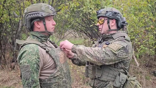 Офицеры управления одного из мотострелковых соединений группировки войск «Днепр» вручили государственные награды военнослужащим штурмовых групп. Церемония прошла на позициях вблизи линии боевого соприкосновения. Пресс-служба Минобороны делится кадрами церемонии. Одним из награжденных стал сапер мотострелкового полка рядовой Анатолий Прокопец. Военнослужащий, который участвует в СВО с 2022 года, служить пошёл по мобилизации, на этот раз удостоен медали «За отвагу». «Награду получил за разминирование...