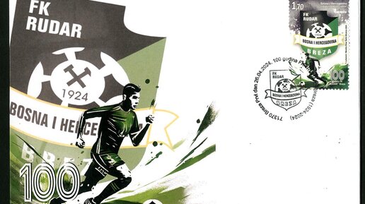 100 лет футбольному клубу "Рудар" Бреза. Босния и Герцеговина. #филателия #футбол