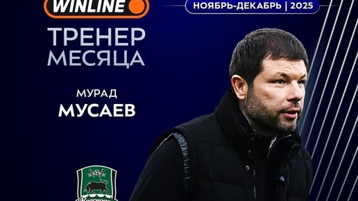 Наставник ФК «Краснодар» Мурад Мусаев стал WINLINE тренером ноября-декабря