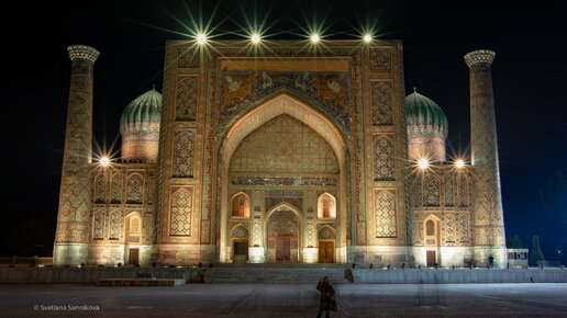 Регистан –– ансамбль из трёх медресе на главной площади Самарканда –– пример персидской архитектуры.