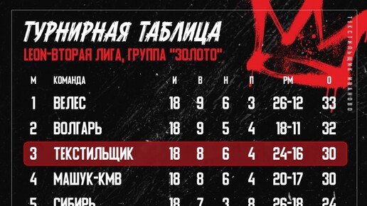 Футбольный клуб «Текстильщик» подвёл итоги выступления команды в первой части сезона в LEON Второй Лиге дивизиона A, группе «Золото». Последний матч в календарном графике команда сыграла 16 ноября, завершив встречу с «Тюменью» вничью. Коллектив уверенно преодолел стартовый этап соревнований, подтвердив свою конкурентоспособность и сохранив высокие турнирные амбиции, и завершил его на третьей позиции в турнирной таблице. Как было отмечено пресс-службой клуба, «Текстильщик» продемонстрировал уверенную, организованную игру и смог навязать борьбу всем соперникам группы «Золото»...
