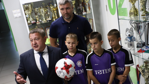 Мяч с подписью президента России, бутс Криштиану Роналду, фото, где красноярские мальчишки вручают звезде спорта фирменную футболку, — у клуба “Тотем” уже целая коллекция уникальных экспонатов. У каждого кубка, снимка, сувенира своя интересная история, подтверждающая, какая насыщенная жизнь у команды. В числе юных игроков клуба — воспитанники детских домов, ребята из неблагополучных семей. О своих спортивных и педагогических достижениях тренеры говорят со сдержанной гордостью, а дети с восторгом...