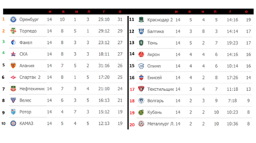 Футбол России. ФНЛ. Результаты 14 тура, расписание, таблица. Кто лидирует?