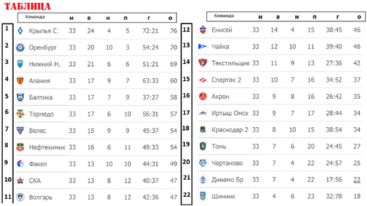 Результаты, расписание, бомбардиры и турнирная таблица ФНЛ.