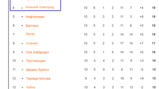 Футбол России. ФНЛ. 10 тур. Результаты, расписание, таблица.