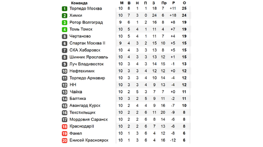 Футбол России. ФНЛ. Торпедо и Химки во главе таблицы. Результаты 9 тура, расписание, таблица.