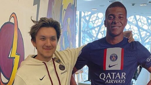 Профессиональный игрок в Dota 2 Айбек TA2000 Токаев опубликовал забавную фотографию с Килианом Мбаппе. Однако на фото не сам футболист «Пари Сен-Жермен», а его картонная копия. Керри команды PSG.Quest является поклонником Мбаппе и очень хочет с ним встретиться. С братком. В декабре 2023 года Токаев рассказал, что CEO клуба пообещал ему встречу с реальным футболистом Килианом Мбаппе, который также выступает за команду «Пари Сен-Жермен»...