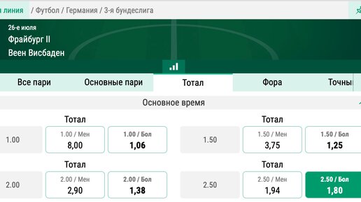 Всем привет! Сегодня заканчивается первый тур в третьей немецкой лиге и в этой паре команд поставлю на такую "не хитрую" ставку, Тотал больше, почему? Эта встреча пройдет во Фрайбурге! Хозяева поля в прошлом сезоне катком прошлись по своей региональной лиге, команда из последних 14 матчей в 11 играх одержала победы! также отлично молодежь Фрайбурга играет на своем поле, где команда в прошлом сезоне из 21 домашней игры в 15 одержали победы! Надо сказать, что эта игра пройдет при зрителях (придет ,примерно,...