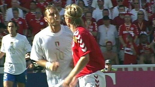 Продолжаем сериал про интересные сюжеты из истории чемпионатов Европы. «Худшие моменты моей карьеры? Есть два случая, – признался Франческо Тотти в интервью журналу Sette в марте 2021-го. – Удар по ногам Балотелли и плевок в Поульсена. Это худшее, что я мог сделать. Это вообще словно был не я. До сих пор не понимаю, как это произошло». *** Италия начала чемпионат Евро-2004 матчем против Дании. Джованни Трапаттони выпустил в старте Франческо Тотти, Алессандро Дель Пьеро и Кристиана Вьери, но мощная атака не помогла – 0:0...