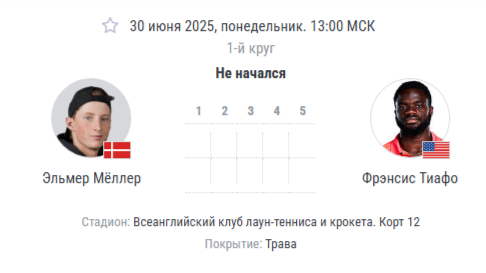 🎾 Полная аналитика матча Уимблдон-2025: Эльмер Мёллер (Дания) vs Фрэнсис Тиафо (США)