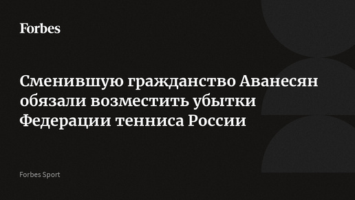 Федерация тенниса России (ФТР) на своем официальном сайте сообщила, что получила решение Национального центра спортивного арбитража (НЦСА), который 9 декабря 2025 года рассмотрел дело между ФТР и теннисисткой Элиной Аванесян о возмещении ФТР убытков в связи с неисполнением ее договора спортивной подготовки. В ФТР отметили, что арбитраж несколько месяцев рассматривал материалы и принял решение в пользу федерации. Теперь Аванесян обязана возместить ФТР установленные НЦСА суммы убытков, компенсации с доходов от тенниса, предусмотренные договором о спортивной подготовке, иных издержек федерации...