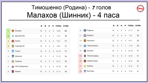 В ФНЛ завершился 10-й тур. Рассказываю о результатах, расписании, таблице. . КАМАЗ проиграл Нефтехимику 0-1. В этой игре КАМАЗ получил 2 красные карточки на 66-й и 96-й минутах. Команда 5-й матч подряд не может победить (4 ничьи и 1 поражение). . СКА нанёс поражение Химкам 3-1. Хабаровчане одержали первую победу в 5-ти матчах. Последний раз они выигрывали в середине августа у Акрона (1-0). . Кубань уступила Акрону 0-1. Венесуэльский нападающий Андрес Понсе забил свой 3-й гол в сезоне. А через минуту его клуб остался в меньшинстве...