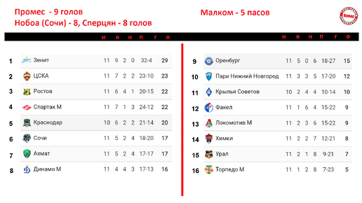 Чемпионат России (РПЛ). 11 тур. Результаты. Расписание. Таблица.