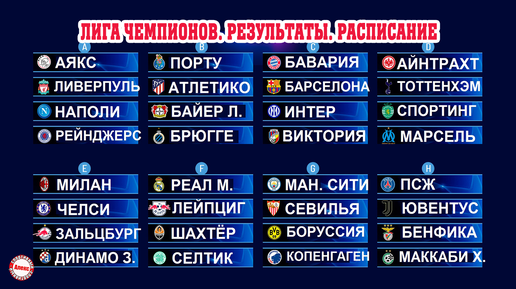 Футбол. Лига Чемпионов. 3 тур. Результаты гр. A,B,C,D. Расписание. Таблица.