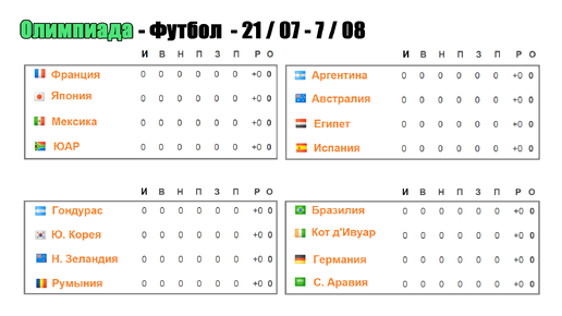 Олимпиада 2020. Футбол. Крах Германии, Франции и Аргентины. 1 тур. Результаты, расписание, таблицы.
