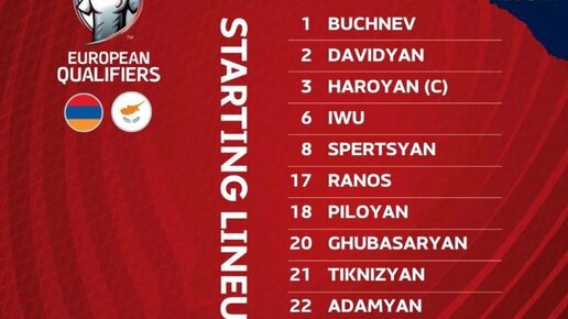 Федерация футбола Армении огласила состав команды на матч с Кипром, сообщается на сайте федерации. Сборная Армении проведет товарищеский матч с национальной командой Кипра в 19:00 на Республиканском стадионе имени Вазгена Саркисяна. В список попали Станислав Бучнев, Арсен Бегларян и Арман Нерсесян, Давид Давидян, Вараздат Ароян, Георгий Арутюнян, Степа Мкртчян, Угучукву Иву, Хорен Байрамян, Эдуард Сперцян, Артур Серобян, Жирайр...