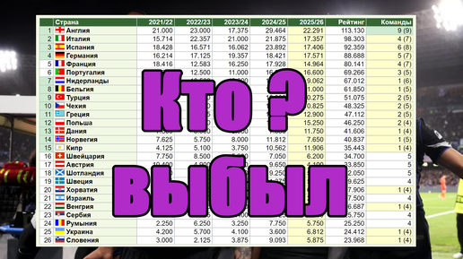 Обновление Таблицы УЕФА после стыков. Сколько стран отсеялось?