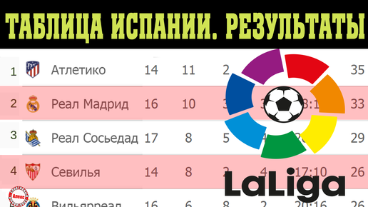 Чемпионат Испании по футболу. Результаты 16 тура, таблица и расписание.