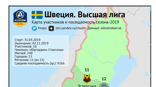Атлас посещаемости футбола. Швеция. Высшая лига-2019