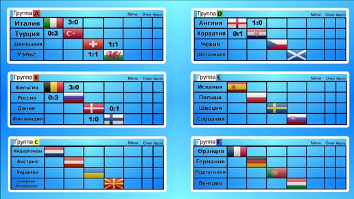 Турнирная таблица Чемпионата Европы по футболу 2020