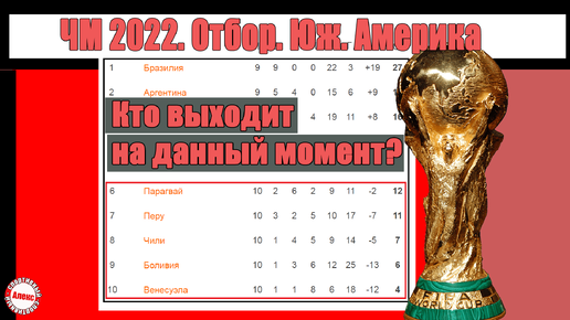 Кроме УЕФА, предлагаю рассмотреть на какой стадии находится отборочный этап на ЧМ-2022 в других футбольных конфедерациях. Сегодня про турнирное положение команд в Южной Америке. Напомню что там футбол находится по управлением КОНМЕБОЛ...