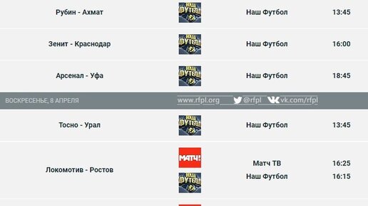 11:00 СКА-Амкар - «Стадион им. Ленина» (Хабаровск) 14:00 Рубин-Ахмат - Центральный стадион (Казань) 16:30 Зенит-Краснадар - Санкт-Петербург (Санкт-Петербург, Россия) 19:00 Арсенал-Уфа - Центральный стадион «Арсенал» (г...