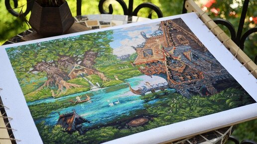 (Николай Гумилёв) Вышивка по набору Panna «У святого источника», или как я называю этот сюжет, «Дубы-колдуны»! Не смог устоять перед сюжетом в духе этакого древнеславянского фэнтези. Меня привлёк терем, занимающий здесь значительную часть вышивки. Очень уж он необычен и таинственен, в нем точно живет магия... а как же иначе, когда рядом Святой источник под охраной таких дубов-колдунов!...