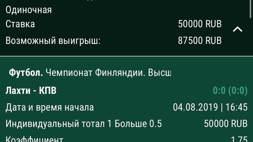 ⚽️Лахти - КПВ ✅Индивидуальный Тотал 1 Больше 0.5
