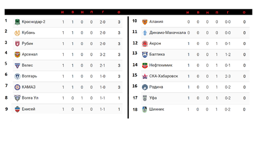 Футбол России. ФНЛ. 1 тур. Результаты. Таблица. Расписание.