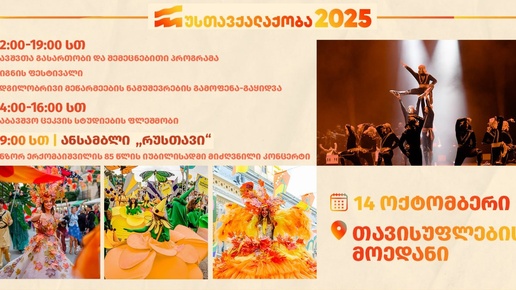 Праздничные мероприятия в рамках «Руставкалакоба-2025» начнутся в 12:00 на площади Свободы с насыщенной детской программой. Гости праздника смогут насладиться красочными костюмированными шествиями, встречами со сказочными персонажами, захватывающими шоу иллюзионистов, увлекательными мастер-классами и кукольным театром. Параллельно с развлекательной программой для детей пройдет книжный фестиваль, где посетители смогут приобрести издания четырнадцати издательств по сниженным ценам. В 14:00 состоится...