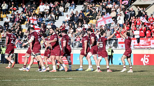Сборная Грузии по регби обыграла Испанию в заключительном матче группового этапа чемпионата Европы со счетом 42:30, обеспечив себе первое место в группе. Испанцы открыли счет точным штрафным, однако "Борджгалоснеби" быстро перехватили инициативу: Вано Каркадзе занес попытку, а Тедо Абжандадзе уверенно реализовал – 7:3. До перерыва грузинская команда занесла еще две попытки и контролировала ход встречи. Испания ответила двумя штрафными, и первый тайм завершился со счетом 21:9 в пользу хозяев. Во...