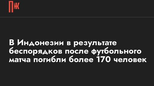 После проигрыша одной из команд тысячи болельщиков выбежали на стадион, к ним применили слезоточивый газ, началась давка. В Индонезии погибли по меньшей мере 174 человека и пострадали сотни в результате беспорядков на футбольном поле. Об этом сообщает The Guardian со ссылкой на местные власти. Данные о погибших стремительно растут — изначально сообщалось о 127 смертях. Беспорядки начались после матча между командами «Арема» и «Персебая». "Арема" проиграла со счетом 3:2. По данным полиции, после...