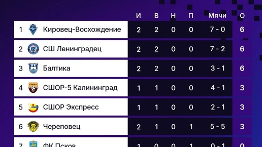 📊 ⚽️🏆 турнирная таблица ЮФЛ Северо-Запад | Юношеская футбольная лига после 2️⃣ тура