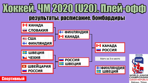 Чемпионат мира по хоккею 2020 (U20). Россия - Канада в финале. Результаты 1 /2 плей-офф. Расписание.