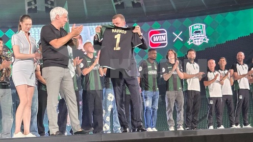 Именную футболку получил Евгений Наумов во время презентация сезона ФК «Краснодар»
