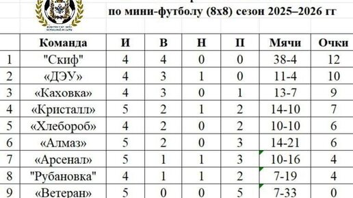 Пятая игровая неделя чемпионата области по футболу 8×8 показала — турнир в самом разгаре. Команды демонстрируют характер, а счет в матчах порой меняется от атаки к атаке. Итоги игрового дня: ⚽️ "Ветеран" – "Скиф" 1:14. Команда "Скиф" оформила уверенную победу, показав высокую результативность. ⚽️ "ДЭУ" – "Кристалл" 1:1. Упорная борьба и справедливая ничья — никто не хотел уступать. ⚽️ "Алмаз" – "Хлебороб" 3:4. Самый результативный и напряженный матч недели. "Хлебороб" одержал победу в голевом противостоянии...