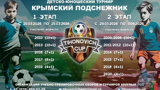 🏆»⚽🔥⚽ Приглашаем принять участие в новом формате детско-юношеского турнира «Крымский подснежник –2026» ✅В стоимость «пакета участника» входит: ⚽проживание в комфортабельных номерах, ⚽4-ех разовое питание (заказное меню). Спортивное сбалансированное питание ⚽мед. обслуживание( круглосуточно) ⚽Сауна /баня ⚽Предоставляются футбольные поля для вечерних тренировок. ⚽Ежедневное посещение бассейна с минеральной водой 📸 Ежедневный фото и видеообзор! На территории базы работают кинотеатр 🍿и кафе ☕ 🔥⚽1 ЭТАП ПРОВЕДЕНИЯ – С 20...