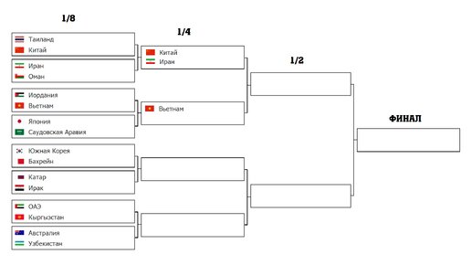 Футбол. Кубок Азии 2019. Плей - офф. 1/8. Схема турнира. Результаты. Расписание.