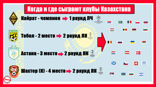 Когда и где стартуют клубы Казахстана в Лиге Чемпионов, Лиге Европы и Лиге Конференций? Жеребьевки и расписание.