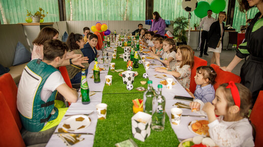 Футбольная тематика как никогда актуально! Особенно на фоне недавно прошедшего чемпионата — но маленькие поклонники футбола будут рады такой вечеринке в любое время. Мы с радостью оформим для вас самый красивый день рождения, посмотрите, что можно сделать! На вечеринке Умара в честь его семилетия первой в глаза бросалась крутая зеленая фотозона, украшенная шариками (некоторые из них с принтом футбольных мячей). А рядом стол тематический “плакат”, настоящее футбольное поле в миниатюре. Сладкий стол...