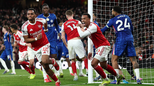 Лондонский футбольный клуб "Арсенал" в матче 28-го тура Английской Премьер-лиги дома обыграл "Челси" в городском дерби. Проходившая на стадионе "Эмирейтс" встреча завершилась со счетом 2:1. За "канониров" голы забивали Вильям Салиба (21-я минута) и Юрриен Тимбер (66-я минута). В добавленное ко второму тайму время автоголом отметился игрок "Арсенала" Пьеро Инкапье. Все голы в матче были забиты после розыгрыша штрафных угловых ударов. Полузащитник "синих" Педро Нету на 70-й минуте оставил свою команду в меньшинстве, получив вторую желтую карточку...