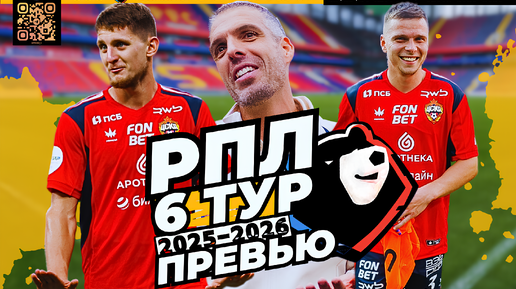 Футбол: расписание и превью 6-го тура Российской Премьер-лиги 2025/26