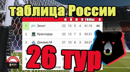 Футбол. Чемпионат России (РПЛ). 26 тур. Результаты. Расписание. Таблица.