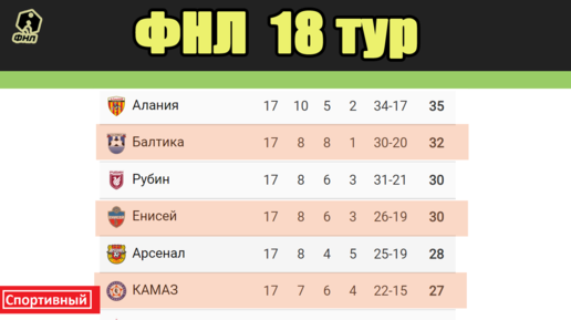 Футбол России: ФНЛ. Результаты. Таблица. Расписание. 18 тур.