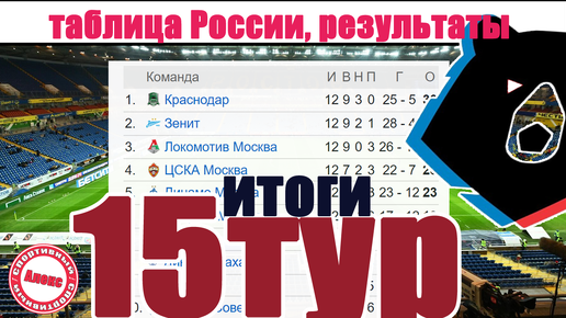 Чемпионат России по футболу. 15 тур. Результаты, таблица, расписание + таблица ФНЛ
