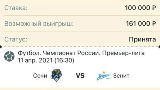 Мой уверенный прогноз на футбол ⚽️ Сочи - Зенит 11.04.21