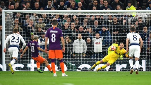 Чисто английское противостояние в четвертьфинале ЛЧ началось с победы лондонского клуба с минимальным счетом. Новехонький Тоттенхэм Хотспур Стэдиум, вмещающий 62 тысячи болельщиков, впервые принимал Лигу чемпионов в своих стенах. И крещение главным европейским клубным турниром получилось очень удачным. В начале встречи госи получили едва ли не лучший в футболе шанс пробить по воротам из выгодной позиции без сопротивления защитником. Речь идет об одиннадцатиметровом ударе, назначенном главным арбитром встречи Бьорном Куйперсом уже на 13-ой минуте...