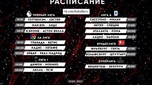 Расписание футбольных матчей на 20.12.2020⚽️