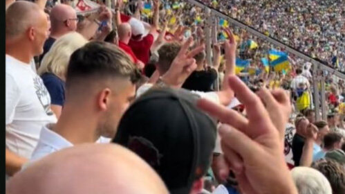 Английские болельщики во время матча с Украиной показывали украинцам неприличные жесты — Видео
